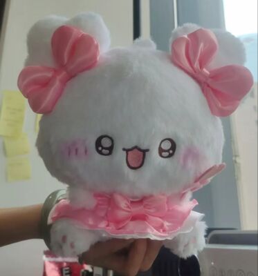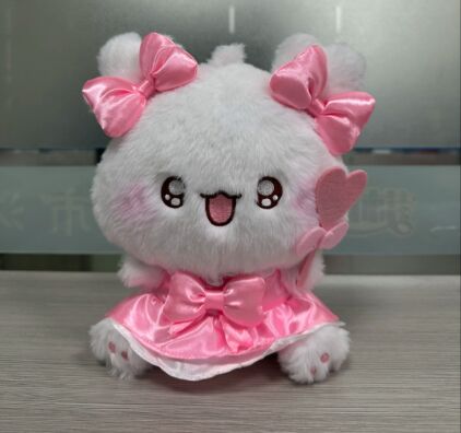 This custom plush doll themed “Sweet Pink Bunny Ear Sweetheart” features soft milky white fluff as the base, paired with pink large bow decorations that are full of girlish charm—3D satin bows on both sides of the ears + an exquisite waist bow on the skirt, double the sweet impact! The round bun face, paired with shiny innocent eyes, plus fluttering pink blush and a grinning cute expression, instantly hits the girlish heart~ Skin-friendly fluff + fluffy filling, it’s soft and healing to hold in your arms. Whether it’s used as a daily companion doll or a custom exclusive cute gift, it can directly max out the cuteness!